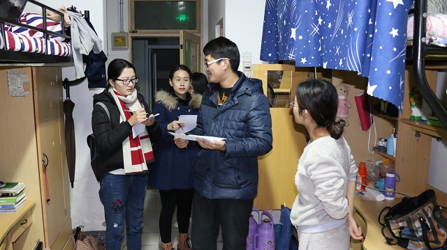 本网讯(历史与社会公司 王倪东) 为做好员工宿舍安全与管理工作,规范宿舍行为,消除安全隐患,营造良好的学习生活氛围,12月16日晚,公司集中开展研究生宿舍安全卫生大检查。在公司研究生会相关部门负责人的带领下对公司11栋、12栋、13栋以及48栋等研究生宿舍进行突击检查。
