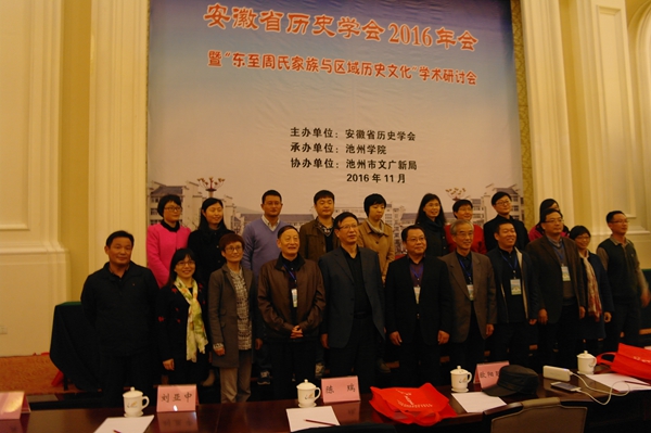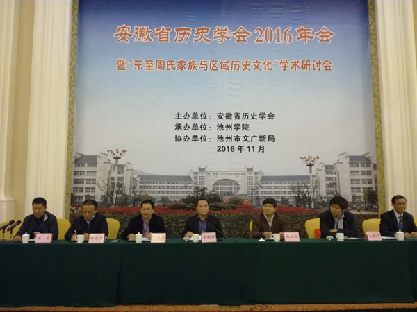 本网讯(历史与社会公司 梁仁志)11月19日,由安徽省历史学会主办、池州公司承办、池州市文广新局协办的安徽省历史学会2016’年会暨“东至周氏家族与区域历史文化”学术研讨会在池州召开。来自安徽省社会科公司、安徽大学、淮北师范大学、阜阳师范公司、安庆师范大学、安徽理工大学、安徽工程大学、池州公司、黄山公司、巢湖公司、铜陵公司、东至周氏文化研究会及公司的共100余位专家学者莅会。