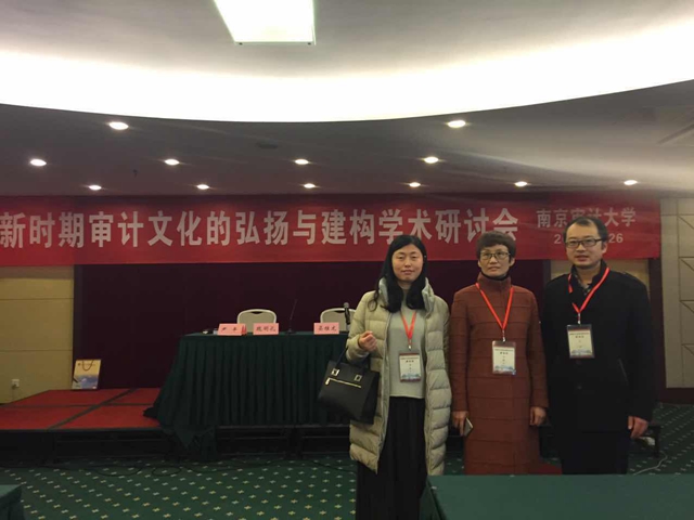 本网讯(历社公司 宫超)11月26日-27日,由南京审计大学主办的“新时期审计文化的弘扬与建构学术研讨会”在南京审计大学(莫愁校区)召开。公司吴晓萍教授、宫超老师,校图书馆李永卉老师参加了会议。
