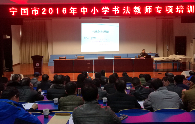 省书法家协会会员姚金中老师主要讲述《中小学书法教学基本要领》。他在附小担任书法教师20年,积累丰富的教学实践经验,并在全省多所公司及国培班开展培训辅导讲座,深受大家好评。
