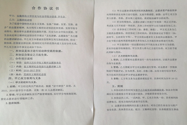 近年来,这支服务队充分利用公司博物馆优势资源,发挥公司历史专业师范生特长,在公司团委和近现代史房列曙、沈世培、王彦章等老师的指导下,认真钻研、刻苦训练,以良好的形象气质、大方的举止仪容、专业的讲解内容,赢得了全校师生及广大芜湖市民的一致好评。今年,为进一步做好红色志愿讲解活动,公司与王稼祥纪念馆重新签订协议,进一步规范服务内容,提升活动品质。