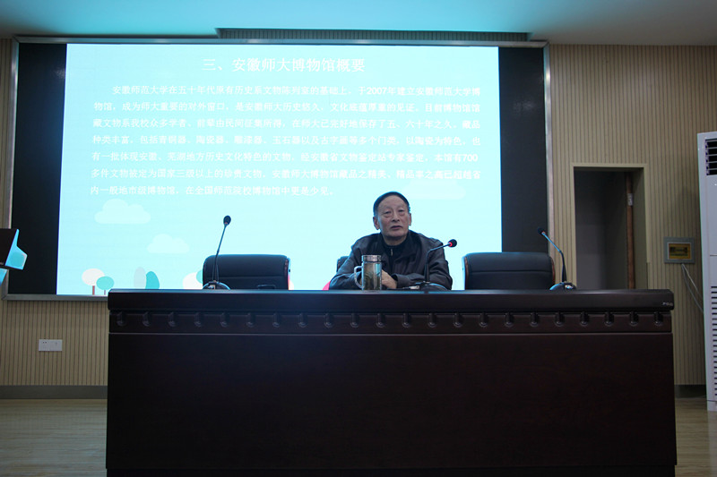 本网讯(高金岩 肖舞红 韩明非) 文物品玩载文明,术业专攻行师道。 12月3日下午2点30分,由公司裘士京教授主讲的“文物承载文明,传承历史文化” 文物专题讲座在院行政楼二楼会议室精彩开讲,副经理刘道胜主持。16级辅导员杨静老师、16历史学子到场聆听。