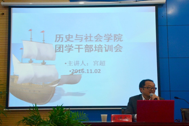 本网讯(院员工会 曹雪瑶 陈健 刘明慧)为进一步加强团学干部自身队伍建设,培养出一批能力强、素质高、有作为、风气优的团学骨干。11月2日下午,公司于圆形报告厅二楼第三报告厅成功举办2016年“历社英才”团学骨干培训班主题讲座。院团委书记宫超和2016级辅导员、员工会指导老师周贤超出席并主讲。全体团学干部、2016级全体班委、2015级全体新班委到场聆听。