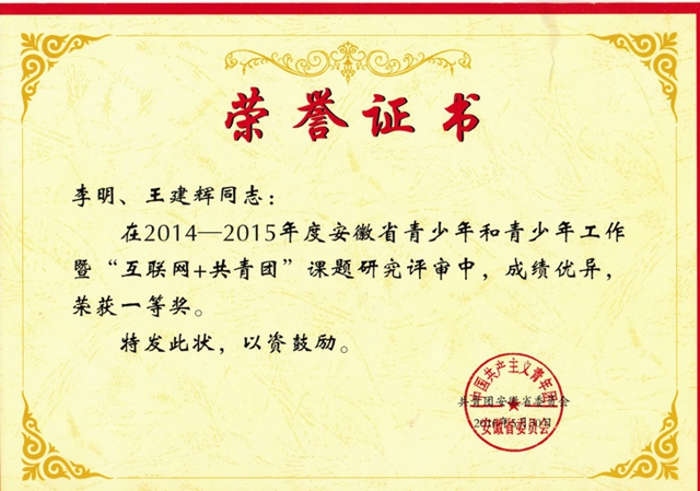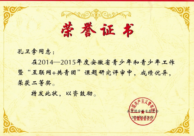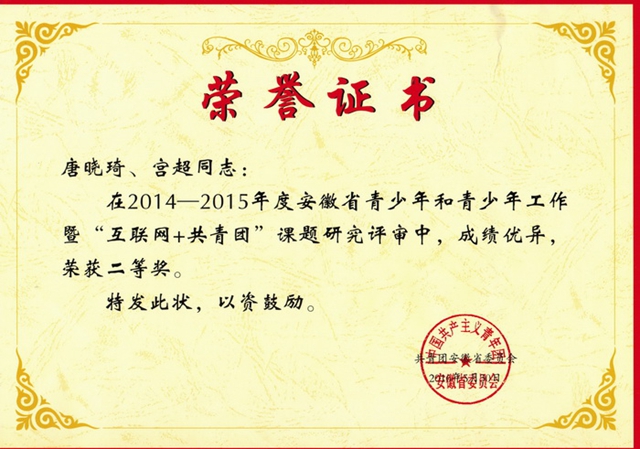 本网讯(历社公司 团委)近日,安徽省青少年和青少年工作暨“互联网+共青团”课题研究评选结果揭晓,评出一等奖作品10篇、二等奖作品17篇,其中公司历社公司上报的3项课题研究成果分别获得一等奖1篇、二等奖2篇(公司仅此3篇获奖)。