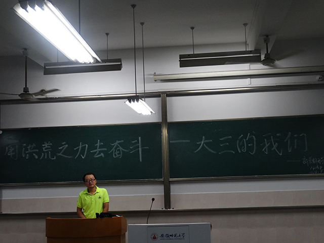 8月29日,《安徽2016下半年中小学教团队格考试(笔试)公告》规定,从2014年起新入学的师范类专业员工,申请教团队格须参加全省统一的中小学教团队格考试。公司2014级历史学辅导员宫超在8月31日即召开“用洪荒之力来奋斗——大三的我们”主题班会,着重强调教团队格统考这一新变化,详细解说考试规定内容,要求同学们不等不靠,放下思想包袱,告别传统思维,立即行动起来,争取在今年11月份一次性通过资格认证考试。