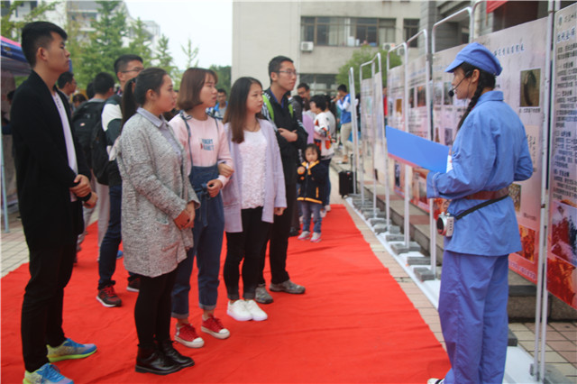 中午的二食堂前人头攒动,雄壮激昂的长征组歌中,广场上的十五块展板一字长排,铺成了一张十米长的历史画卷,引得行人纷纷驻足、观看。“八十年前,八万红军从南中国的崇山峻岭中开始了漫漫长征……”随着讲解员抑扬顿挫的语调,同学们仿佛穿越时空走廊来到了80多年前的峥嵘岁月。同学们逐渐放慢脚步,伫立在展板前,随着时间的推移,眼前的图片和文字开始变得有温度起来。当看到第五次反“围剿”失败时,同学们不禁为之扼腕;当回顾长征的重要战役时,同学们为红军领袖和红军战士的智慧与英勇而深深折服;当解说员说起长征时恶劣的环境和不为人知的感人故事时,同学们心中肃然起敬……翔实的图片,大量的数字,动人的故事提炼出的革命奋斗和乐观主义精神令在场的同学们身临其境,感同身受,倍受鼓舞。最后,同学们在签名墙上郑重地签上姓名,一撇一捺间是责任,是担当,更是对继承革命先辈精神、实现共同理想光辉前景的坚实描绘!