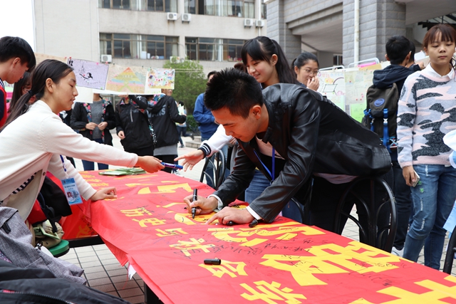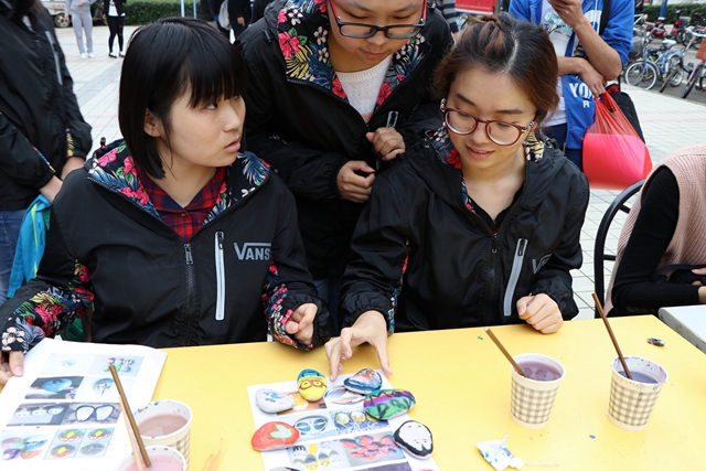 活动现场分为四个区域。在主题展示区域,一张张展板排成一线,在宣讲人的讲解下,图片仿佛有了温度,观看的同学们透过文字和图片感受到辅导站传递的温暖。在手抄报评比区,历社公司15、16级同学们通过一段段寄语、一张张图画传达了对美好生活的向往,传递对身边同学的关爱,投票的小星星让手抄报更加斑斓。一支支青春洋溢的辅导站代表队在背景墙前聚集。舞蹈、歌曲、公益秀吸引着同学们驻足观看。他们的热情和独特的展示赢得了场中的阵阵掌声。在手绘石区域,同学们手中五彩的画笔,展示了对生活的热爱。在一笔一划之间,嘴角扬起幸福的弧度。最后,在横幅上同学们郑重的签下了自己的名字。镜头记录下这温暖的一幕幕,关爱心理健康的理念通过此次活动在同学们的心中萌芽。