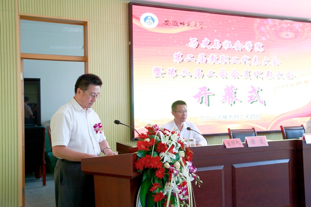 本网讯(金捷)凝心聚力谋发展,奋力拼搏促跨越。2016年9月24日,历史与社会公司在院行政楼三楼报告厅隆重召开第二届教代会暨第六届工代会。公司党委常委、纪委书记、教代会执委会主任程度,校工会主席、教代会执委会副主任赵红,公司教代会和工代会代表、特邀代表出席大会。