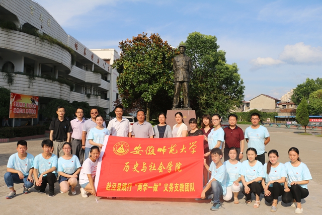 本网讯(历社公司 邓怡晨)7月15日,校工会主席赵红,公司党委书记顾凌、副书记胡悦超、团队指导教师傅新球、团委书记宫超、15级辅导员金捷等一行6人,前往泾县稼祥中学看望了正在实践中的公司14级本科生党支部赴泾县践行“两学一做”义务支教团队的全体志愿者。