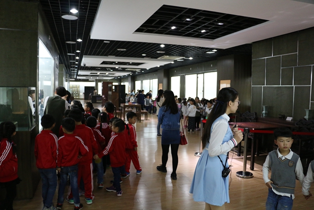 在博物馆讲解员的引导下,小朋友们排着整齐的队伍,怀着喜悦的心情,有序地分批次进入展厅。伴随着博物馆讲解员童趣的介绍,小朋友们注意力很快被吸引,并跟随着讲解员的指引,仔细观看每一件珍贵文物。从远古石器到明清古典家具、从北朝陶俑到唐三彩、从大端砚到青花瓷。形态各异,造型生动的珍贵藏品,激发了孩子们对历史文物的浓厚兴趣。小朋友们争前恐后的提出心中的疑问,在得到讲解员耐性的解答后,脸上洋溢出满意的笑容。参观活动尾声,孩子们在欢笑中结伴依次走出博物馆展厅,依依不舍地挥手向博物馆老师和讲解员们道别。