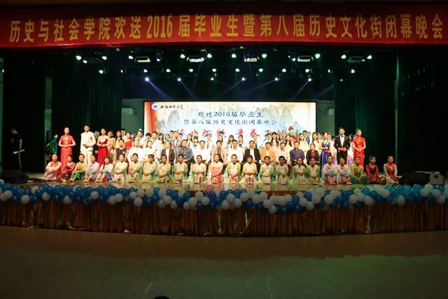本网讯(历社公司 汪章靓)5月28日晚,历社公司欢送2016届毕业生暨第八届历史文化街闭幕晚会在花津校区大礼堂隆重举行。浙江大学博士生导师林卡教授,广东省博睿社工服务中心唐南先生,马鞍山博望区中小企业局局长张俊及10余名马鞍山中小企业家代表,芜湖市慈善爱心人士晋涛先生,公司党委组织部、宣传部、机关党委、发展规划处、人事处、后勤管理处等部门领导,员工家长代表,公司领导班子、部分教师,以及千余名员工观看了本场晚会。
