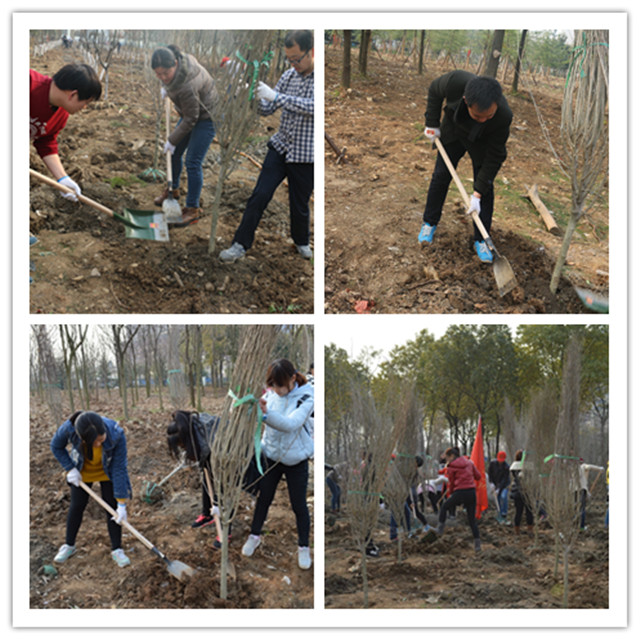 地表的石块、垃圾基本清理干净之后,同学们又和公司的领导老师一起种植紫叶李、木槿等树苗。他们三两人自成一组,有工具的负责挖坑培土,没有工具的负责扶正树苗,一丝不苟地做着每一道工序。劳动现场热火朝天,同学们干得都非常起劲,下午5点未到,便保质保量地完成了植树任务。