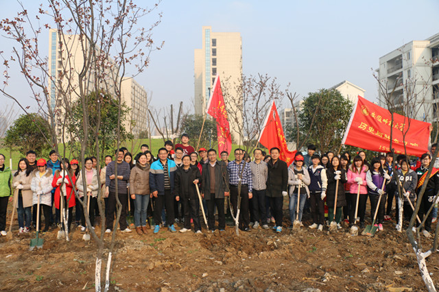 本网讯(历社公司 宫超、杨露露)阳春三月,草长莺飞。在第38个“植树节”到来之际,为开展集体劳动教育,树立爱校荣校意识,3月11日下午,公司组织近百名本科生,在校后勤管理处的指导下由公司党委副书记胡悦超带队到二食堂北侧绿地开展护绿植树义务劳动。