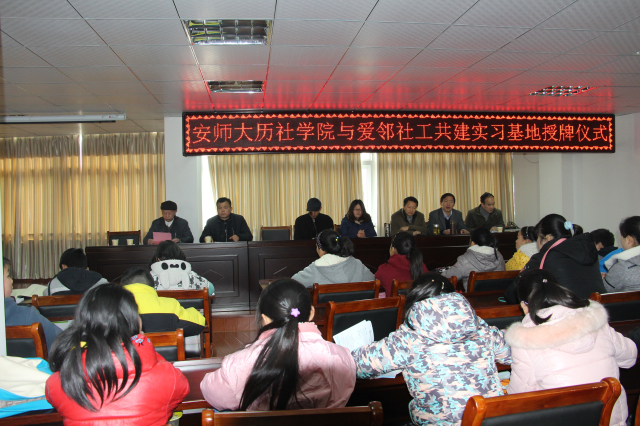 本次合作共建是对前期合作工作的深化,主要内容包括:第一,公司在爱邻社会工作服务中心设立实习实训基地,作为本科生和硕士生人才培养的平台;第二,双方合作开发社会工作硕士课程《社会工作实习工作坊》;第三,应机构要求,公司选派社会工作专业教师王杰担任中心督导,以推动机构的专业化建设。授牌仪式上,杨前华会长肯定了爱邻居社会工作服务中心在与高校合作共建、加强机构专业督导建设等方面的创新举措。赵怀娟副经理指出,近年来公司与爱邻社工服务中心在人才培养工作方面已有初步合作,希望这次新的合作共建能推动双方共同努力把公司人才培养工作和机构专业化建设工作提升到新的水平。王杰老师表示,会在公司的大力支持下,认真督导好机构建设和项目运行,不断提高自己的社工实务能力、教学水平和服务社会的能力。