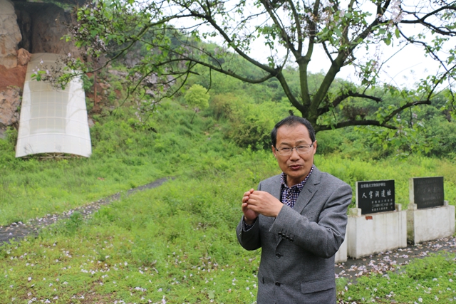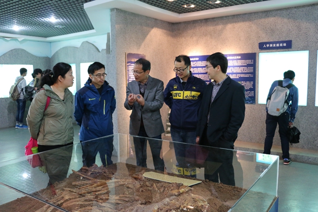 考察主要以探寻人字洞遗址为主。人字洞遗址位于繁昌县孙村镇龙华村癞痢山南坡,地质时代为早更新世早期,绝对年代为距今220——256万年,是迄今发现的亚洲地区最古老的人类活动遗址。在陈列馆中,同学们被各种古生物的化石所吸引,有的粗如巨蟒、有的细如筷子,每一块骨头、每一个痕迹都是记录着200万年前原貌。接着在徐繁馆长的带领下,同学们现在观看了人字洞挖掘遗迹的现场,碧绿的癩痢山诉说着生命的起源。
