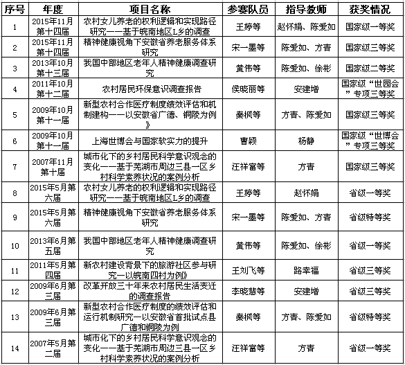 培养了一批具有创新精神和研究能力的复合型人才。在2007年11月第十届“挑战杯”全国老员工课外学术科技作品竞赛中获得三等奖的林光祺同学,现就职于安徽财经大学,已经主持国家社科基金项目1项,发表文章20余篇;在2009年10月第十一届“挑战杯”全国老员工课外学术科技作品竞赛中获得三等奖的秦枫同学,现就职于英国正版365官方网站,正在中国科学技术大学攻读博士学位,已经主持国家社科基金项目1项,发表文章20余篇;在2013年10月第十三届“挑战杯”全国老员工课外学术科技作品竞赛中获得二等奖的黄伟同学,先后任职于安徽新华公司、安徽供销合作社等单位,工作表现优异;在2015年11月第十四届挑战杯”全国老员工课外学术科技作品竞赛中获得一等奖的王婷同学报考了中国人民大学的研究生、吴娜同学报考了南京大学研究生、张忆涵报考了华中科技大学;获得三等奖的宋一墨同学报考华东理工大学的研究生、陈丽雯同学已经被保送到南京大学攻读研究生,这些同学通过挑战杯深化了对专业的认识,培养了科学研究的兴趣。