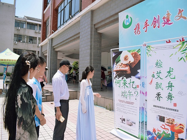6月5日中午,2018级历史学专业在二食堂广场进行了端午节传统文化宣传活动,志愿者们为同学们介绍了端午节的起源,缅怀了伟大的爱国主义诗人屈原,指出端午节作为中国的传统节日已传承了千年,形成了独特的风俗,挂艾草、吃粽子、赛龙舟、吟雄黄等不同的习俗,他们还邀请同学们进行知识问答,赠送艾草香囊。