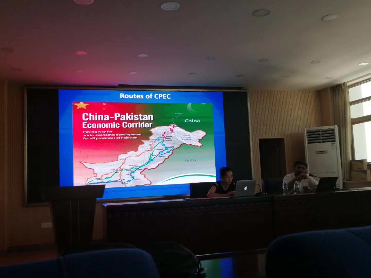 13日下午,Shabir教授在院二楼会议室做了题为《中巴经济走廊的未来走向》报告,公司徐佳博士担任同声传译。Shabir主要阐述了中巴经济走廊的融资机制和地缘政治意义,指出日本之丧失世界第二大经济体乃是因为未能在推动区域经济一体化上有所作为,而他相信中巴经济走廊会大大改善巴基斯坦的基础设置和农业开发,更重要的是,能够推动巴基斯坦、伊朗、阿富汗和中亚国家与中国的区域一体化进程。世界史几位专业教师和相关院系的研究生听取了报告并就相关问题请教了Shabir教授 。