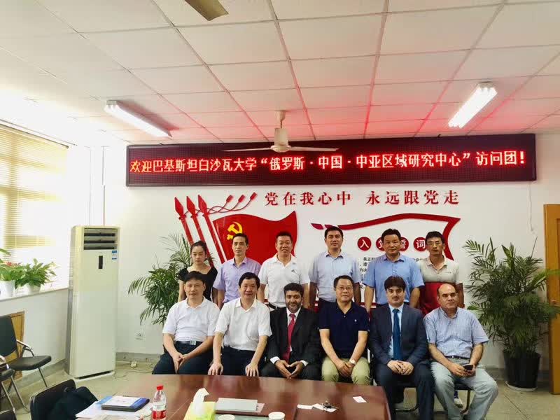 本网讯(历史与社会公司)2019年8月10-14日,应公司巴基斯坦研究院邀请,巴基斯坦白沙瓦大学Shabir教授一行三人来访公司。12日上午 ,历社公司经理徐彬教授在院四楼会议室主持召开了欢迎仪式,公司党委副书记李琳琦教授介绍了公司校史和基本情况并致欢迎辞。随后,白沙瓦大学副教务长Amin先生用PPT介绍了该校的地理位置、办学历史、院系设置、招生规模、国际交流,表示希望加强与中国高校的合作。其后巴基斯坦白沙瓦大学区域研究中心(俄罗斯、中国和中亚)主任Shabir教授指出,白沙瓦大学区域研究中心是根据1975年巴基斯坦教育部加强区域研究的文件成立的,挂靠在白沙瓦大学,是巴基斯坦六大国家级高校区域研究类智库之一,藏书丰富,国际交流设施齐备,出版发行学术刊物《Central Asia》。他渴望加强与公司的合作,将9月份即将在该校召开的国际会议的邀请函递呈给徐彬经理,并带来了合作备忘录英文版。公司宣传部部长胡靖、教务处处长周端明、发规处处长王刚、科研处副处长戴兆国、历社公司副经理刘道胜以及相关教师参加了会议。