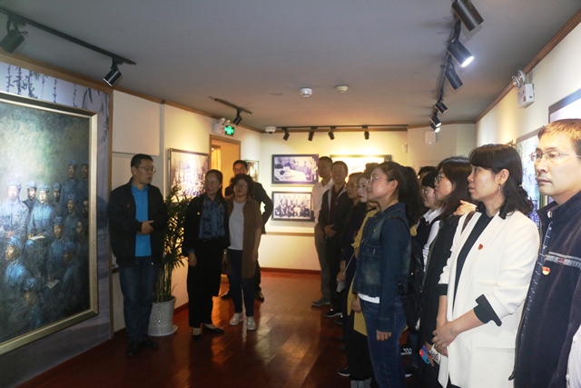 下午四时,教工党员在公司王稼祥纪念园红色讲解队的5位志愿者同学带领下进入各个展厅,认真浏览展馆中的相关展品和图文资料;深入了解王稼祥同志的生平事迹和历史功绩,体会到王稼祥坚持真理、修正错误、立党为公、光明正大的革命作风。在参观中,公司部分教工党员根据专业知识对解说词进行了讨论和修正。已经退休的刘际钢老师根据自己四十多年的国史授课经验,为大家详细讲解了王稼祥革命生平,给现场的教工党员和志愿者们上了生动的一节党课。最后,在王稼祥纪念铜像前,公司教工党员面对党旗,重温入党誓词。