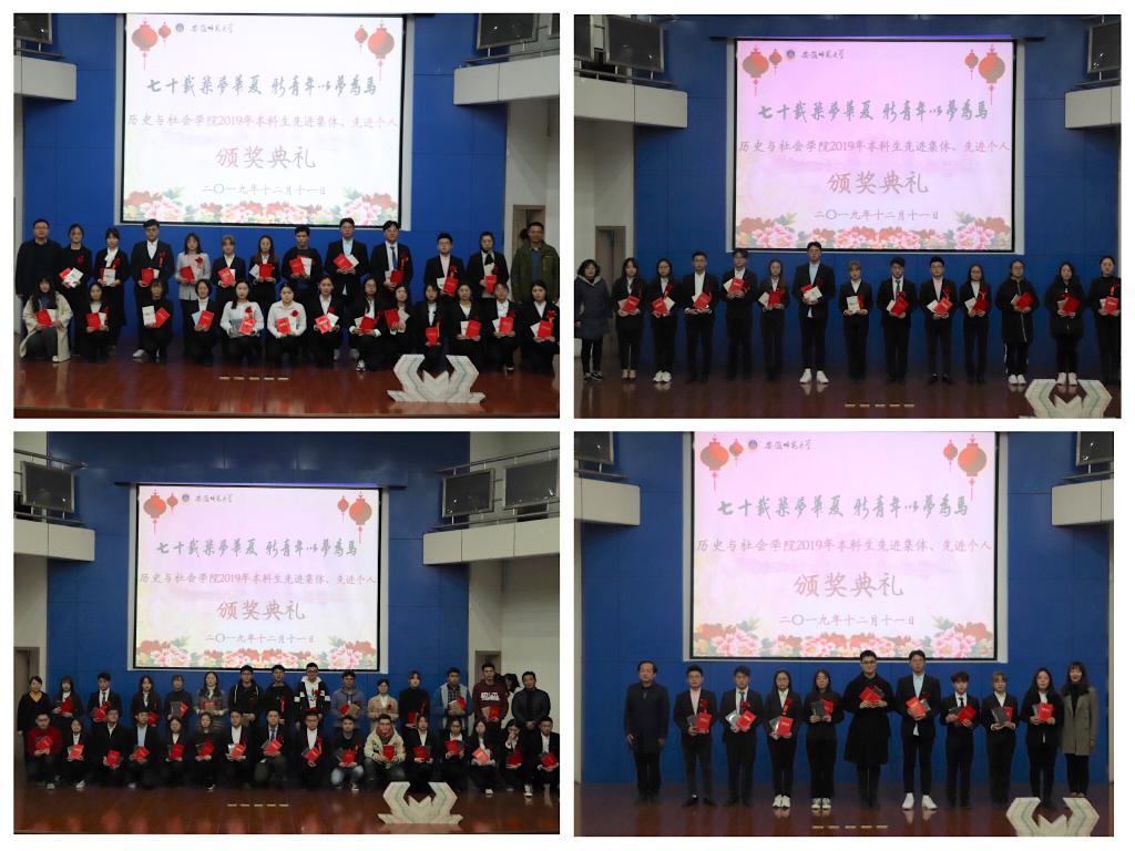 本网讯(历社公司 项悦 赵发)为了营造“争先进,做先进”的良好氛围,发挥本院本科生先进集体、先进个人的模范带头作用。历社公司于12月11日下午14时30分于敬文报告厅成功举办了2019年本科生先进集体、先进个人的表彰大会。公司领导、专业负责人、优秀教师代表以及各科室秘书、辅导员等莅临会场。颁奖典礼由公司党委副书记胡悦超主持,全体2019级本科新生到场观摩学习。