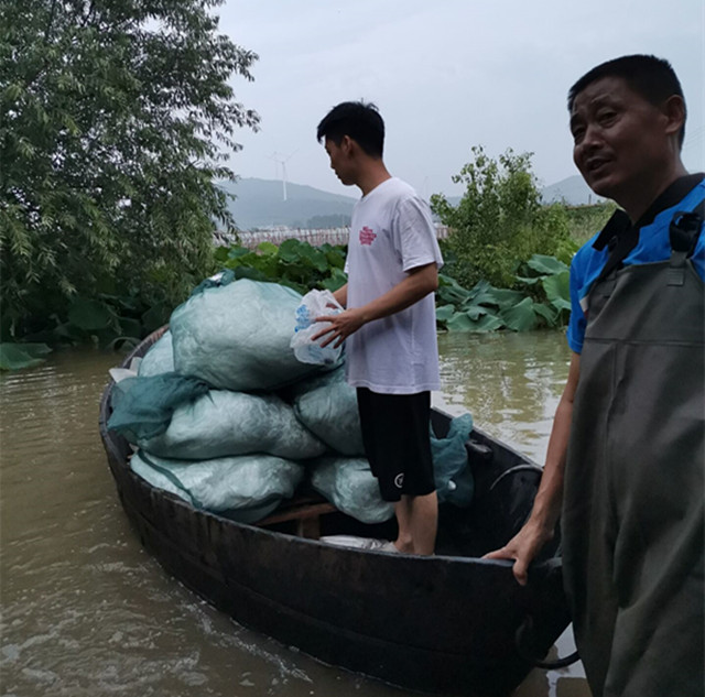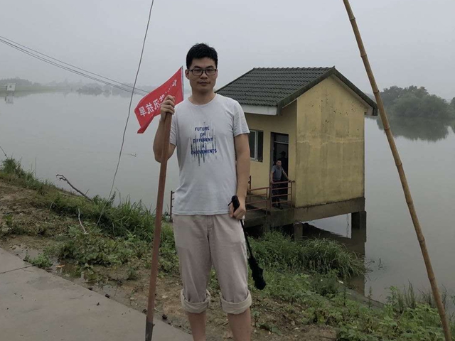 2019级中国史研究生邓高翔,中共党员,在合肥市巢湖市槐林镇槐花行政村参与抗洪救灾,负责监控水位和扛沙包工作。“水太大了,我一直在做事”,简短的回复体现出他忘我拼搏的奋战精神。