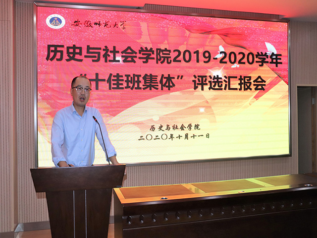 汇报结束后,院团委书记宫超老师作最后的总结发言,宫超老师对各班的优秀表现和杰出成绩给予了充分肯定和赞扬,并表达了对2020级新生班级的期许和鼓励,愿他们不负所托,去造就属于自己的辉煌。希望未来的岁月里,各班级继续携手同行、再续佳绩,共写“历社人”的多样风采,共创历史与社会公司更美好的明天。