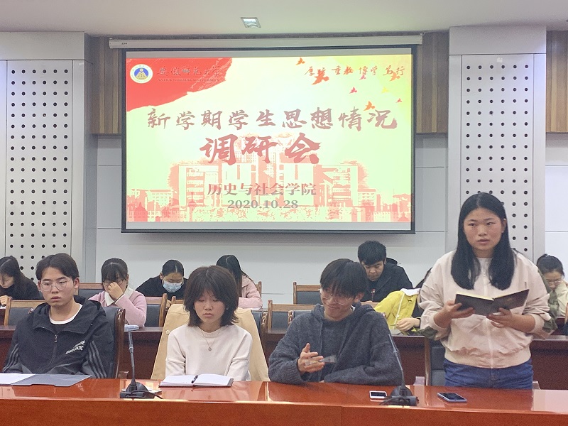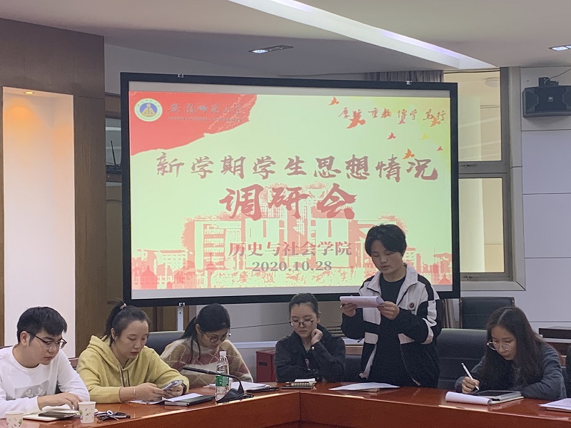 本网讯(院团委宣传部 潘靖童 程永希)为及时有效地了解新学期大员工的思想动态和问题建议,10月28号下午3点,公司在圆形报告厅第一会议厅举办了新学期员工思想情况调研会。公司党委副书记胡悦超、世界史专业主任韩家炳、社会学专业主任路幸福、社会工作专业主任仇凤仙以及公司团委、教学办、全体专兼职辅导员老师,本科生各年级专业班长团支书参加本次座谈会,会议由胡悦超主持。