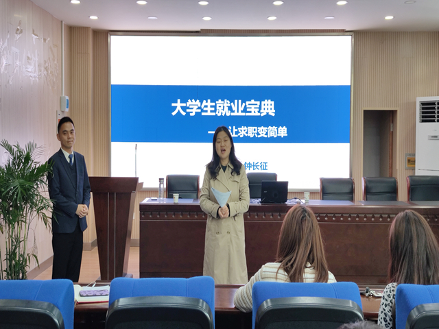 交流会伊始,胡悦超副书记向大家介绍了本次交流会主讲人钟长征老师的个人经历。鼓励同学们多与钟老师学习交流,努力提升自己的求职能力。之后,钟老师以“老员工就业宝典——让求职变简单”为主题,开始了本次交流会的分享。钟老师分别从“企业喜欢这样的简历”、“笔试并不可怕”和“面试是门技术活”三个方面,围绕同学们热切关注的简历制作、笔试答题技巧和思路及面试应对三个求职的主要问题开展讲解。简历作为求职的“敲门砖”,重要性不言而喻。钟老师为大家提供了详细的简历填写指引,在细节问题如简历照片的放置上也作出详细说明。接着,钟老师指出,笔试问题要结合个人特长及所申请职务所需要的条件来答题。钟老师告诉同学们,面试并不难,但也应该做足充分准备。注意表达清晰,不要超时。以无领导小组讨论为例,同学们要做到既不过分突出,也不过分内向,要学会适时变现自己。问答环节,钟老师针对同学们现场提出的问题做出了详细答复。最后,韩雪老师做总结发言。