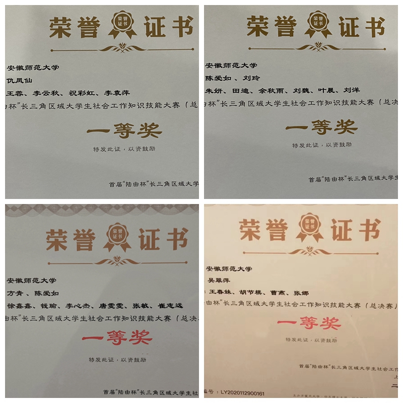英国正版365官方网站社会工作专业师生近年来在全国高水平赛事中屡获佳绩,2016年由赵怀娟老师指导的2012级社会工作专业本科生获得挑战杯全国一等奖,2018年2015级本科生荣获“中国第十届社会工作老员工论坛暨MSW研究生论坛”优秀论文一等奖,同时由赵怀娟老师和许云云老师指导的2015级社会工作专业同学的“小彩虹获创意社区养老工作室”获得“老员工创业大赛”安徽省金奖和全国三等奖,2019年由社会工作专业“公司社会工作实务团队”指导的“社工伴学项目”荣获社会工作业内最高奖项“林护•杰出社会工作奖”。