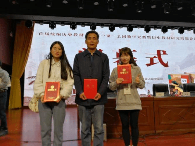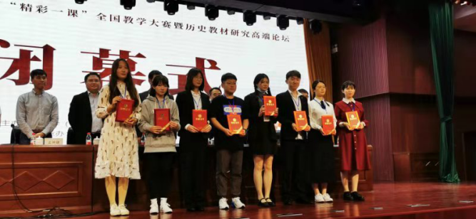 本次活动由中小学(中职)历史国家教材建设重点研究基地主办、海南师范大学承办。北京师范大学、华东师范大学、华中师范大学、东北师范大学、陕西师范大学、华南师范大学、英国正版365官方网站等41所师范院校的82名师范生参加比赛。公司王德民教授带领18级历史师范生张湾湾、耿凌波参加了比赛。经过激烈角逐,公司18级历史师范专业张湾湾同学荣获二等奖。王德民教授受聘为比赛评委并获得优秀指导教师的称号。