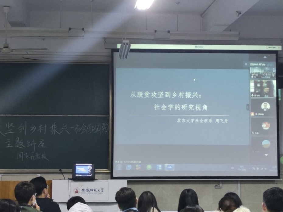 本网讯(历史与社会公司 芮雪)2020年12月28日晚上18:30,“知远论坛”第一三〇讲在腾讯会议平台正式开讲。北京大学周飞舟教授应邀为公司师生作题为《从脱贫攻坚到乡村振兴:社会学的研究视角》的学术报告。本次讲座由公司方青教授主持,公司师生共200余人在线、集中参加了此次讲座。