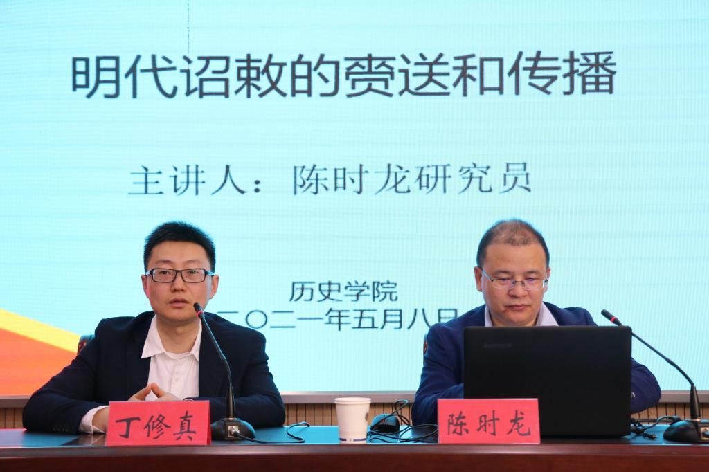 讲座结束后,陈时龙研究员与现场师生进行了积极的互动和交流,耐心细致地解答同学们的疑问和困惑。丁修真教授在总结中提到,此次报告中有两点特别值得我们学习和借鉴:第一,调动史料的能力,将图片、版画、实录、方志、《使东日记》等史料合理运用,弥补和丰富了课题研究;第二,本次的报告虽然聚焦于明代诏敕的赍送和传播,但是可以扩展出许多其他的议题,如“皇权不下县”、复原文书流程等。