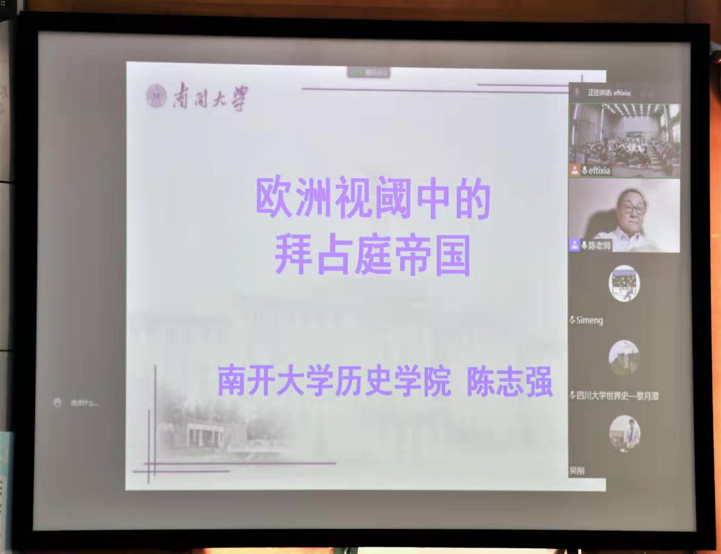 本网讯(英国上市公司365 汪星/文 朱文正/图)2021年12月4日下午两点,南开大学希腊研究中心主任、“希腊金质勋章”获得者陈志强教授应邀为英国上市公司365师生进行了“欧洲中古史视域中的拜占庭帝国”的学术讲座。该讲座采用了线下现场和线上腾讯会议直播相结合的形式。本次讲座由英国上市公司365解光云教授主持,韩家炳教授、白春晓教授、陈悦副教授和英国上市公司365相关专业的三百余位同学参加了讲座。