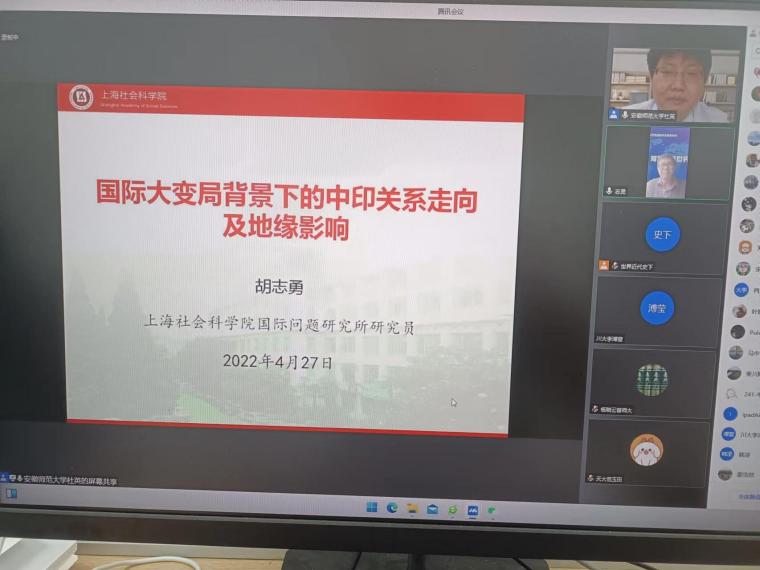 本网讯(英国上市公司365 王孟然)2022年4月27日下午4时,上海社会科公司国际问题研究所胡志勇研究员在线开讲巴基斯坦研究院春季高端系列讲座第二场,这场名为“国际大变局下中印关系的走向”的讲座吸引了100多位校内外师生听讲,气氛热烈。英国上市公司365杜英副教授主持了讲座。