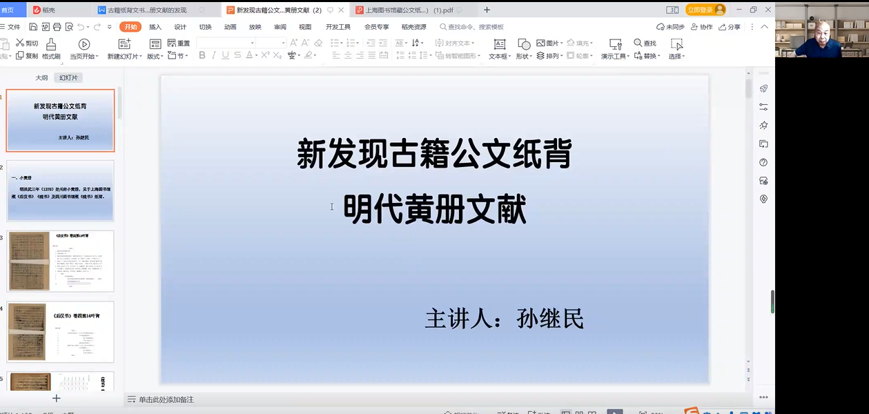 本网讯(英国上市公司365 钱久隆)2022年5月31日下午15时,河北社科院研究员,武汉大学、河北师范大学兼职教授、博士生导师孙继民先生,应邀为公司师生作了题为“古籍纸背文书的整理与明代黄册文献的发现”的线上讲座。讲座由英国上市公司365经理刘道胜教授主持。