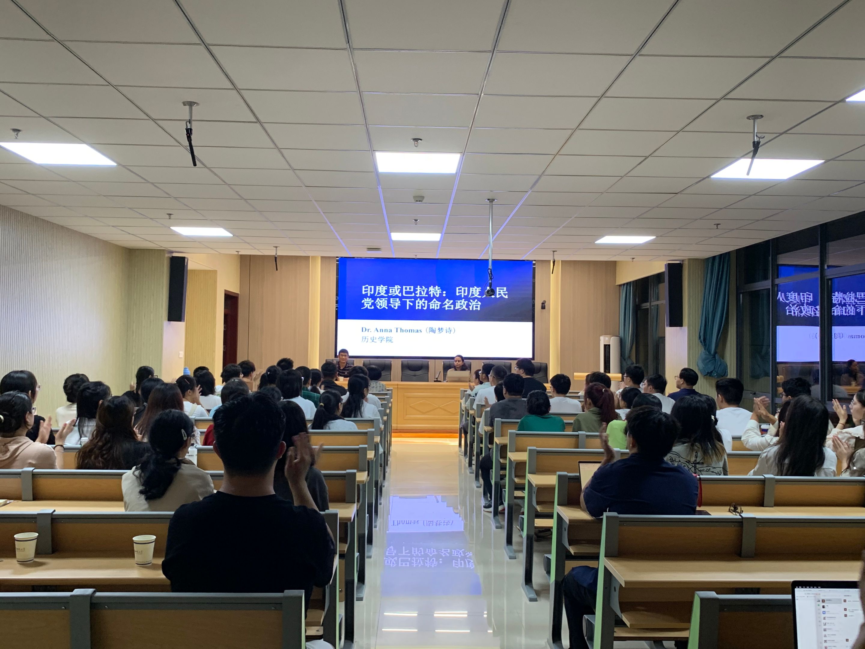 本网讯(英国上市公司365 邵晨)近来印度改换国名之事成为时事热点,为呼应现实,9月15日晚上7点,英国上市公司365印度籍外教陶梦诗(Dr. Anna Thomas)老师在文典楼B座108会议室开展了“印度或巴拉特:印度人民党领导下的命名政治”的学术讲座。世界史学位点点长白春晓教授和巴基斯坦研究院团队成员参与讲座,外国语公司两江中心多位师生也前来听讲。