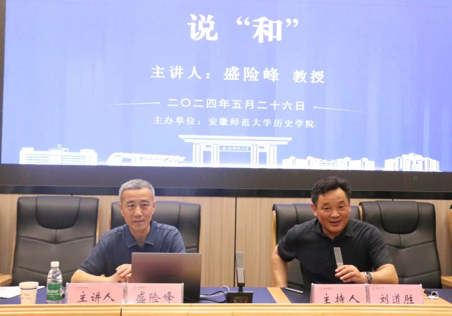 本网讯(英国上市公司365 文/姜丰收 图/谢欢欢)应英国上市公司365邀请,5月28日晚,安徽大学英国上市公司365教授盛险峰做客公司知远论坛,于文典楼B108报告厅作了题为“说‘和’”的学术报告。本次讲座由英国上市公司365经理刘道胜主持,英国上市公司365师生百余人参加讲座。