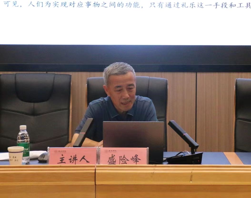 讲座伊始,盛险峰教授首先以“和”的字义为切入点,向与会师生剖析“和”字的内涵。并指出“和”字有三义:天道之和、物理之和、人情之和。紧接着他以史料阐释了“和”的“相应”“调和”之义,同时也正因为此,“和”成为设官分职和礼乐文明的目的,这也成为中国古代文化的经验与智慧。除了对“和”字之义的探讨,他还考察了“和”字与其他汉字的联用,并在此基础上进行分析。如“和合”经常是对和字的疏解;“和同”包括了和而同、同而和以及和而不同的丰富内涵;“中和”则包含在礼乐制度中,为中国古代的礼乐之教服务。之后,他从“对应观”的视角出发,并从关系的角度上看,指出“和”的内涵,表明人与自然界和社会的关系形成的认识是对应统一的。他认为人只有顺应天地之时气,才能和生万物、和生万事,这便是对应统一观。从功能的角度看,他提出“和”是天地万事万物演生的内在规律。并认为中国古代以“和”为理念和工具,“和”渗透于人们生产生活的实践中,体现在人事、制度和思想文化的不同层面。从状态的角度看,他指出“和”是人类社会追求的目标,并认为古代的“十二教”“六德”“五物”等皆有“和”之义。最后,盛险峰教授总结了“和”的研究意义。并指出“和”字反映了人们的世界观和认识论,它既具有语言文字本身的语义语音的变化,也具有文化符号意义的演进。对“和”字内涵的揭示和阐释的梳理,可以看到这一文字使用者的世界观和认识论。