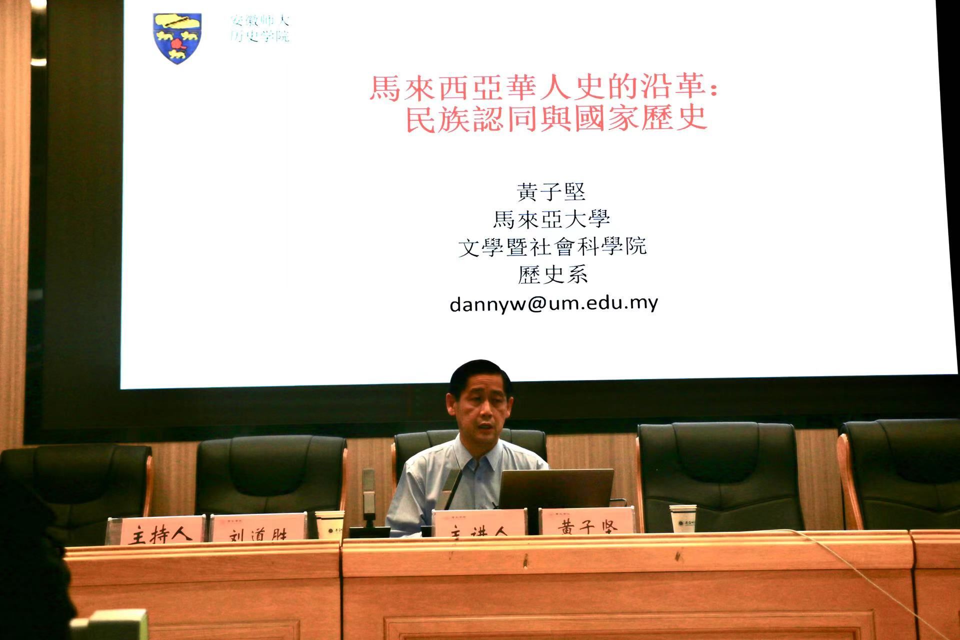 黄子坚教授首先对马来西亚华人的历史地位与研究现状作了简要介绍。他谈到,自明清时期,华人便开始向马来西亚迁移,截至目前已是马来西亚第二大群体,在马来西亚社会各界都发挥着重要作用。尽管如此,当地史学界仍未认识到华人对推进当地历史的积极贡献,在史学研究中对华人着墨甚少,因此必须大力发展马来西亚华人史学,突出华人在马来西亚国家发展中的历史地位。随后,黄子坚教授由宏观到微观,逐步向师生介绍马来西亚华人史学的相关成就。他提出,目前马来西亚华人史学研究虽已初步建立体系,既有黄尧、林水豪、罗正山、陈志明等史学家总体介绍马来西亚华人发展的史学著作,也有聚焦如中马关系史、早期华人史、社团史、地方史、人物传等具体主题的历史研究。但是目前马来西亚华人史学仍存在诸多不足,尚待后续学者继续深入研究,进行补充发展。接着,黄子坚教授对马来西亚华人史学目前所面临的发展困境作具体分析,他认为,史学界中英文语言交流困难是阻碍华人史学发展的主要因素,同时,如何连接专业学者与民间学者,如何整合地方史料与国家史料也都是亟待解决的重要问题。黄子坚教授强调,目前马来西亚华人史学存在诸多缺乏深入探讨的研究方向,再者伴随时代发展,如华人族群关系、华人混血认同、华人再移民等新型历史问题逐步凸显,史学界也应推陈出新,以适应日新月异的学术形势。为此,黄子坚教授提出相关学者应主动突破语言壁垒,加强交流沟通,在对话中探讨新主题、发现新思路;同时提高研究能力,发扬斗争精神,积极突破研究薄弱点、学术空白处,如此才能探寻到马来西亚华人史学的持续发展之路。