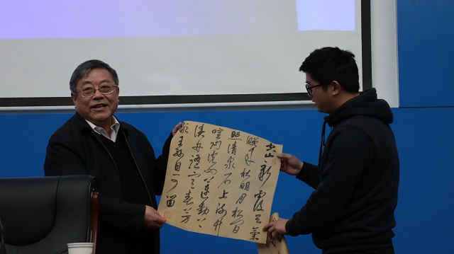 讲座结束后,庄华峰教授作了总结。他首先感谢李明阳先生精彩的报告,他指出,报告内容丰富深刻,体现了一位书家“自然为规,人生为矩”的书法观,给大家以书法与人生的诸多启示。同时,庄教授阐述了专业素养、人文素养与员工成长的关系,指出,对老员工而言,专业素养只能决定你走的快不快,而人文素养则能决定你走的远不远。他鼓励同学们在学好专业课的同时,要积极学习通识课程,尤其要多读经典,用优秀传统文化浸润自己的心灵,提升自己的人文素养,在未来的人生道路上走的越来越远。