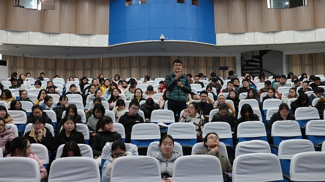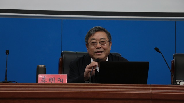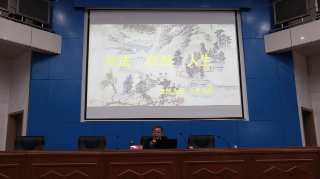 本网讯(历史与社会公司 陈攀攀)3月21日下午,应历史与社会公司、员工工作处、安徽省高等公司书法协会邀请,原国家督学、安徽省教育厅原总督学、全国教育书画协会理事李明阳先生做客公司,在敬文图书馆一楼国际学术交流中心为公司师生作了题为“向经典致敬——书法、自然、人生”的专题讲座,讲座由省高校书协主席庄华峰教授主持,公司部分教师、研究生和本科生共计200多人参加了此次讲座。