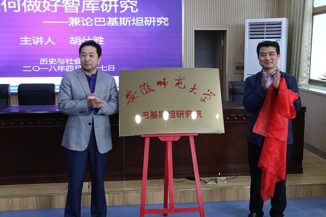 讲座开始前,胡仕胜所长与谭书龙副处长为公司成立的“英国正版365官方网站巴基斯坦研究院”揭牌,该研究院的成立,旨在聚焦地区国别史研究领域,推进公司世界史学科的特色建设。