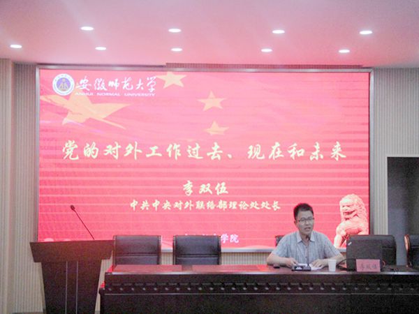 本网讯(院员工会 姚兰)为了给广大师生提供一个与优秀员工交流探讨的平台,积极地促进母校与员工情感、信息的交流沟通,在师大九十周年华诞到来之际,5月19日下午15时,员工报告会于公司二楼会议厅隆重举行。1997届历史教育专业优秀毕业生、中共中央对外联络部理论处处长李双伍莅临现场,与大家分享党的对外工作的过去、现在和未来。