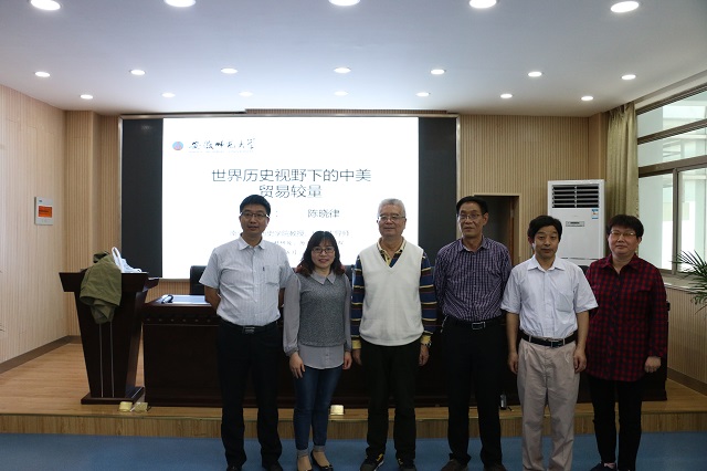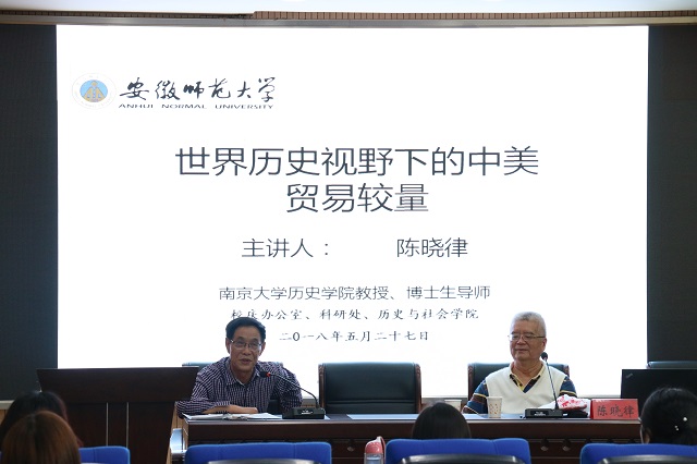本网讯(历社公司 文/郭豆 图/余佩) 2018年5月27日下午,在历社公司二楼会议室,南京大学英国上市公司365教授、博士生导师,中国欧洲学会历史分会副会长,中国英国史研究会副会长,江苏省世界史学会会长陈晓律教授应邀做客文津讲坛,为广大师生带来了题为“世界历史视野下的中美贸易较量”的讲座,本次讲座由公司施兴和教授主持,公司近百名师生到场聆听学习。