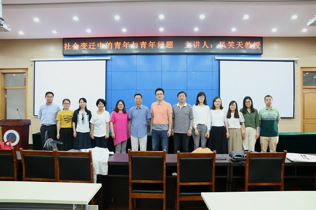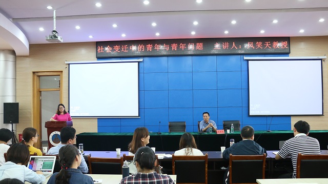 本网讯(历史与社会公司 杨智颖/文 王宇珺/图)5月31日上午,南京大学特聘教授、博士生导师风笑天应邀做客文津论坛,在花津校区圆形会议中心第三报告厅为广大师生作了题为“社会变迁中的青年与青年问题”的专题讲座。本次讲座由历社公司副经理赵怀娟教授主持,公司部分教师以及相关专业的本科生、研究生聆听了报告。