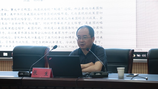 本网讯(历史与社会公司 陈攀攀)5月23日下午,南京大学英国上市公司365经理张生教授在公司二楼会议室为公司师生带来一场“战后美国琉球政策与钓鱼岛问题”的学术报告,讲座由副经理刘道胜教授主持,沈世培教授、王彦章副教授、奚庆庆副教授、丁守伟博士等教师以及部分研究生、本科生到场聆听。