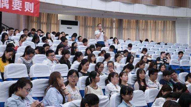 恋爱话题,实则为老员工讨论较多的问题,但是恋爱方面的讲座却少之又少,此次讲座吸引了众多员工,偌大的报告厅座无虚席。陈教授从老员工面临的学业、情感、择业三大问题出发,首先阐述了“规则的重要性“,而后正式进入择偶要则的话题。陈教授从十个方面,以人性和统计数据为背景,运用社会学专业知识详细论述了恋爱与择偶要则,并就相关问题引发思考。陈教授的观点得到大部分同学的认同。在讲座的最后,陈教授鼓励同学们,在青春的大好年华,既要努力学习,也要勇敢去爱!赢得同学们雷鸣般的掌声。