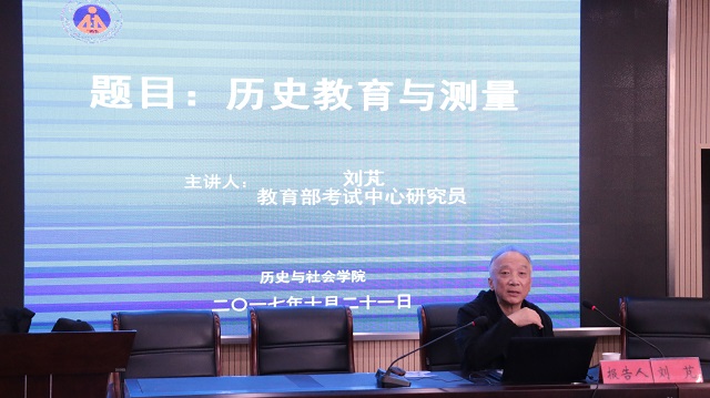 21日上午,系列报告的第二场,刘芃老师作了《历史教育与历史教育测量》的专题报告。刘芃老师从四个方面讲解了历史教育与历史教育测量问题。刘芃老师认为,历史教育有时序性、知识性、基础性和养成性,根据历史教育的特性,历史教育测量应该关乎员工的心理和能力、是综合的、有层级的教育测量。关于教育测量的途径问题,刘芃老师主要从测量理论、测量工具和测量评价三个方面进行分析讲述。在我们对历史教育测量有了一定了解后,刘芃老师进一步讲解了如何实现历史教育测量的问题。刘芃老师认为,实现历史教育测量应该注重建立新型的测量观念和创立新型的测量情境,想要建立新型的测量观念,需要具备基本能力(再认再现、主要联系、初步甄别)、核心能力(时空意识、历史解释、论证水准)和审判能力(批判思维、跨界思考、个人经验);创立新型的测量情境则需要明确测量的意图、方法以及内容。那么,测量对于教育的重要性又在哪里呢?刘芃老师讲解到:测量的作用主要体现在对教育的校准作用上,一般校准主要反映在知识的认知程度、应用程度和内化程度上,深度校准则反映在历史与现实的回望与关照和个人经验的介入上,除了一般校准、深度校准,测量对教育的校准还体现在教育调整和重组教材上。最后,刘芃老师对历史教育测量作了向好的展望,我国的历史教育测量将更具心理测量特征和更具国际意义。