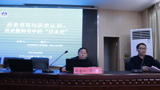 21日上午“历史教学高端论坛”系列学术报告会的第三场如约而至,杨宁一教授作了《历史书写与历史认识——历史教科书中的“日本史”》的主题报告。杨宁一教授在简单介绍历史书写与历史认识的概念之后,以历史学的目的是“还原真实历史,解释历史真相,即求真求实求解”为切入点正式开始了今天的讲座。杨宁一教授首先提到,人们对历史的记忆主要来源于历史教科书,因此历史教科书作为一种特殊的历史书写对我们国家和民族十分重要。接着分析了在我国初中历史教材中,与日本史有关的内容其实就是中日关系史和世界史中的日本史。杨宁一教授选取了教材中关于日本历史书写一些问题,例如:日本大化改新并不能真正体现古代日本社会特征;戚继光抗倭中有关倭寇的成份和领导者的争议性;甲午战争后的留日高潮;五四运动后李大钊先生及北京大学和吉野作造先生及东京大学间的友好往来等,启发我们所有的历史书写都是选择的结果,揭示了中学历史教科书书写深度还不够这一问题,提醒在座师生相比于历史书写的表层,更应该看到其内涵。在讲座最后,杨宁一教授对“历史书写必须有真实性”、“历史书写有选择性”、“应注意历史书写是否反映历史事实的全貌”、“历史书写的深度与解读”等问题作了简短而深入的总结。杨宁一教授的讲座以教科书中日本历史的书写为例,为广大师生梳理了历史书写与历史认识之间的关系。内容详实,深入浅出,发人深省,提醒在座师生应该以历史意识、历史思维看待问题、解决问题。